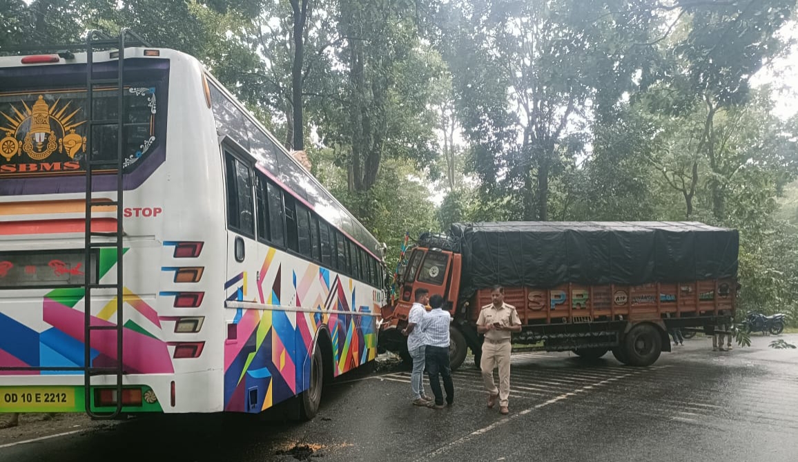 ବସ ଟ୍ରକ ମୁହାଁମୁହିଁ ଧକ୍କା ; ଡ୍ରାଇଭର ମୃତ୍ୟୁ, ୩୦ ଯାତ୍ରୀ ଆହତ