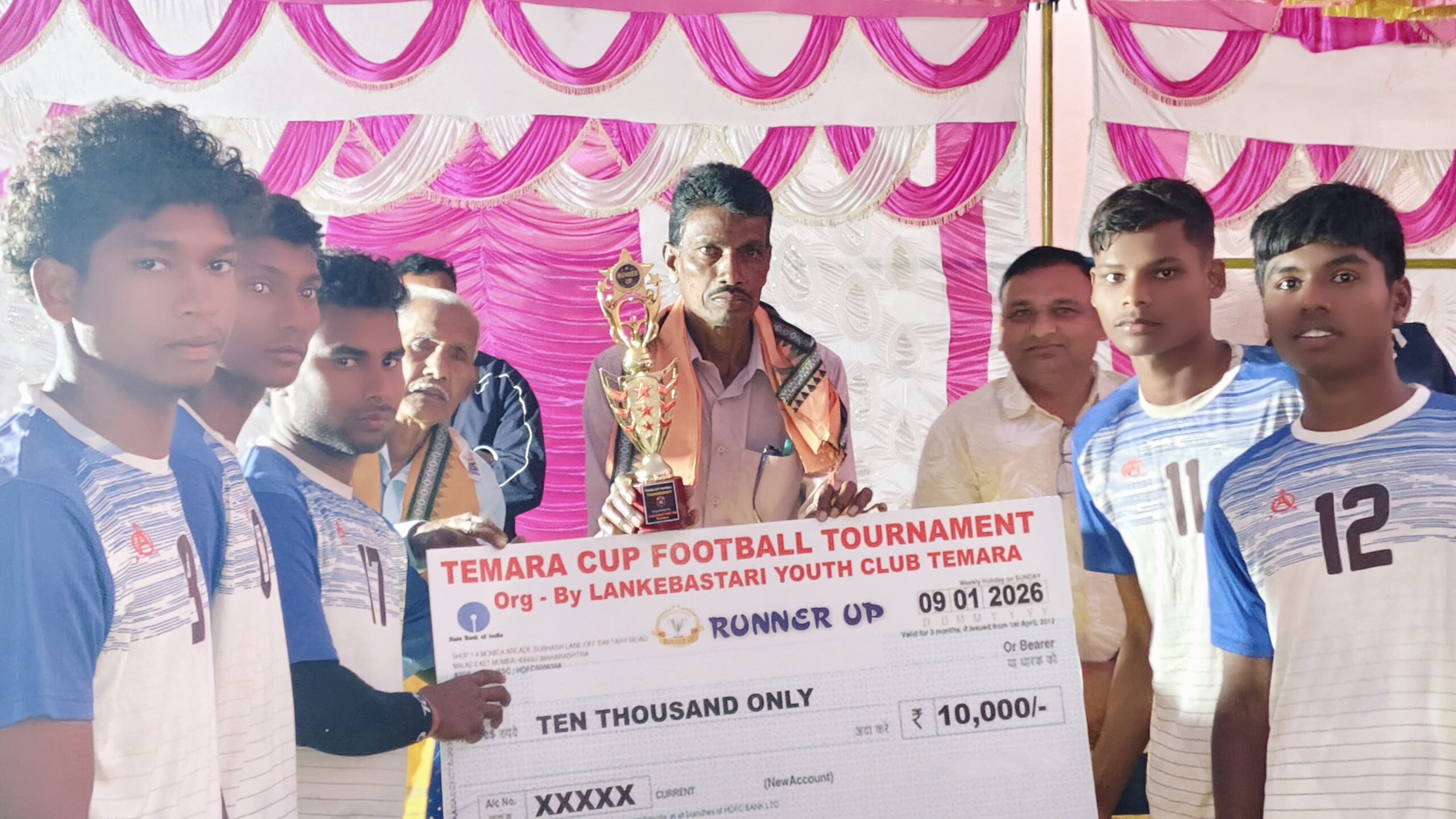 କୋକସରା/କ୍ରାନ୍ତିକ୍ଷେତ୍ର : କୋକସରା ବ୍ଲକ ଟେମରା ଲଙ୍କେଶ୍ବରୀ ୟୁଥ୍ କ୍ଳବ୍ ଆନୁକୁଲ୍ୟରେ ଚାଲିଥିବା ଟେମରା କପ୍ ଫୁଟବଲ୍ ଟୁର୍ଣ୍ଣାମେଣ୍ଟର ଫାଇନାଲ ଅନୁଷ୍ଠିତ ହୋଇଛି। ଏଥିରେ ବ୍ରଦର୍ସ ୧୧ ଟୁର୍ଣ୍ଣାମେଣ୍ଟର ଚାମ୍ପିଅନ ହୋଇଛି। ଫାଇନାଲ ଖେଳ ଟି ଝାରକୁଣ୍ଡାମାଲ ଓ ବ୍ରଦର୍ସ ୧୧ ମଧ୍ୟରେ ଅନୁଷ୍ଠିତ ହୋଇଥିଲା। ନିର୍ଦ୍ଧାରିତ ସମୟ ମଧ୍ୟରେ କେହି କାହାରିକୁ ଗୋଲ୍ ସ୍କୋର କରି ପାରି ନଥିଲେ। ପରେ ଟ୍ରାଇ ବେକରେ ଧାରାକୁଣ୍ଡାମାଲ ଦଳ କୁ ହରାଇ ବ୍ରଦର୍ସ ୧୧ ଟୁର୍ଣ୍ଣାମେଣ୍ଟର ବିଜୟୀ ହୋଇ ଚାମ୍ପିଅନ ହୋଇଛି। ଖେଳ ଶିକ୍ଷକ ତାପସ ଦାସ ଖୋଲ ପରିଚାଳନା କରିଥିବାବେଳେ ଭୁପେନ୍ଦ୍ର ଗୋପାଳ ଓ ସଞ୍ଜୀବ ଦୁର୍ଗା ସହଯୋଗ କରିଥିଲେ। ଫାଇନାଲ ଖେଳର ପୁରସ୍କାର ବିତରଣ ଉତ୍ସବରେ ଯୁବ ଶିଳ୍ପପତି ପ୍ରଶାନ୍ତ କୁମାର ସାହୁ ମୁଖ୍ୟ ଅତିଥି ଭାବେ ଯୋଗଦେଇ ଥିଲେ। ଯୁବନେତା ରାଜେନ୍ଦ୍ର ନାଏକ ମୁଖ୍ୟବକ୍ତା, ସ୍ଥାନୀୟ ସରପଞ୍ଚ କ୍ଷିତିରାମ ପାତ୍ର, ସୁଧୀର କୁମାର ପାତ୍ର, ଜୟଲାଲ ନାଏକ, ଚୌବନ ରଣା, ପରମେଶ୍ବର ପୁଝାରୀ, କ୍ଷିରସିନ୍ଦୁ ହଂସ ପ୍ରମୁଖ ସମ୍ମାନିତ ଅତିଥି ଭାବେ ଯୋଗଦେଇ ଖେଲାଲି ମାନଙ୍କୁ ଉତ୍ସାହିତ କରିଥିଲେ। ବିଜେତା ଓ ଉପବିଜେତା ଦଳ କୁ ଅତିଥି ମାନଙ୍କ ଦ୍ବାରା ଟ୍ରଫି ସହିତ ପୁରସ୍କାର ପ୍ରଦାନ କରାଯାଇଥିଲା। ହୃଷିକେଶ ଦୁର୍ଗା ଓ ଅଖିଳ ପଟେଲ ଖେଳର ଧାରାବିବରଣୀ ପ୍ରଦାନ କରିଥିଲେ। ଲଙ୍କେଶ୍ବରୀ ୟୁଥ୍ କ୍ଳବ୍ ର ପ୍ରଦୀପ କୁମାର ସାହୁ, ଆଶିଷ ରଞ୍ଜନ ମାଝୀ, ମୁକେଶ କୁମାର ସାହୁ, କୁମୁଦ କାନ୍ତ ମାଝୀ, କେଦାର ଦଳପତି ପ୍ରମୁଖ ସମେତ ସମସ୍ତ କର୍ମକର୍ତ୍ତା ସହଯୋଗ କରିଥିଲେ।
